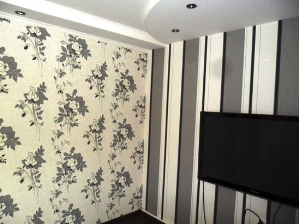 Очень интересно смотрится в интерьере уместное сочетания двух или трёх видов настенного покрытия.