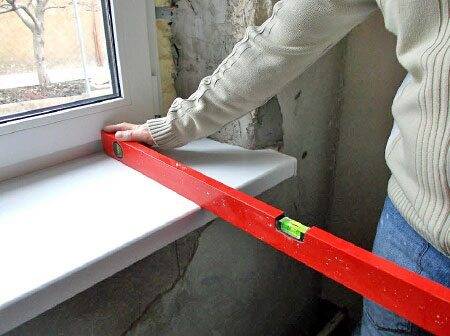 Внимание! Для укрепления подоконника в правильном положении можно уложить тяжелый предмет. Так конструкция не перекосится со временем. Произвести оштукатуривание откосов