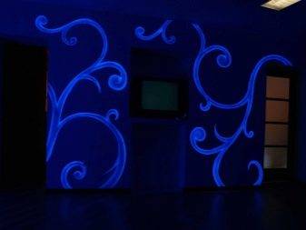 Используют подобные светящиеся вещества и при оформлении интерьеров частных домов и квартир. Отделка стен и многоуровневых потолков с помощью материалов на основе флуоресцентов обходится недёшево, но при наступлении ночи комната просто преображается, приятное свечение придаёт интерьеру красоту и загадочность.