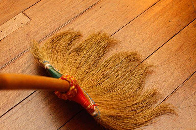 После нанесения лака первые 14 – 16 дней с пола только собирают пыль, влажную уборку не выполняют. Используют пылесос, волосяную мягкую щетку или веник.