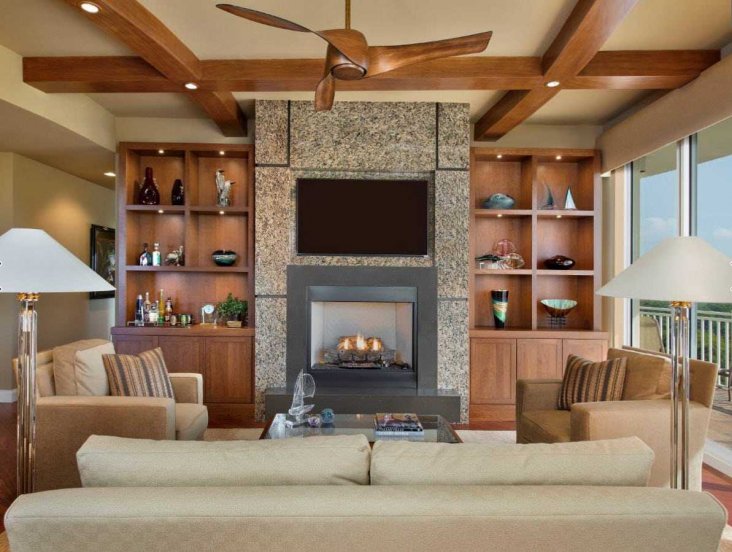 Еще с давних времен, в пещерах, человек любил собираться у открытого огня, чтобы погреться и приготовить пищу. В наше время пещеру заменила — гостиная, а вместо приготовления еды семья собирается у очага для душевных бесед. Именно поэтому напротив камина лучше всего разместить мягкую мебель и журнальный столик.