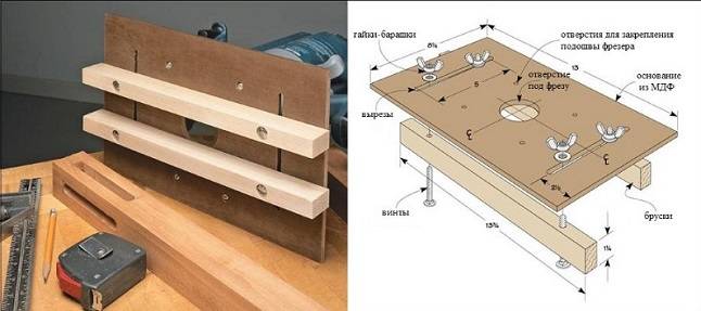 Чтобы выбрать паз на пласти заготовки или ее кромке (торце), можно использовать параллельный упор, как и при врезке дверных замков. Но можно изготовить и специальное приспособление, облегчающее процесс, если требуется выбрать пазы в большом количестве одинаковых деталей из дерева. Как выглядит приспособление для выборки пазов, показано на следующем рисунке.