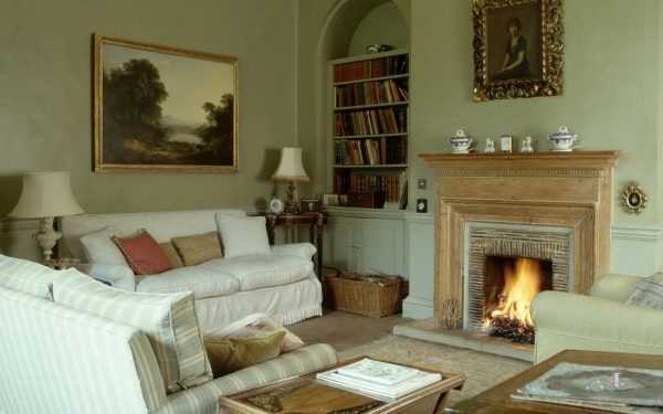 Стиль «прованс» или кантри не потребует большой квадратуры и вполне подойдут для небольшой гостиной, кроме того, облицовки Д-образной формы порталом вполне хватит. Для создания стиля «французского уезда» хватит небольшого по размеру электрокамина и уютного дивана с обилием текстиля и настенных украшений.