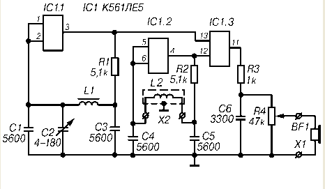 Схема металлоискателя на микросхеме К561ЛЕ5