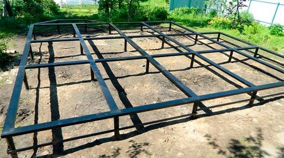Между стойками ставятся горизонтальные перемычки, придающие каркасу жесткость. Угловые стойки обязательно должны дополнительно фиксироваться подкосами.