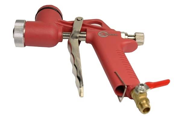 - Корпус, напоминающий формой пистолет. На рукояти корпуса установлен курок, который можно нажимать тремя-четырьмя пальцами одновременно. Курок открывает клапан подачи нагнетённого воздуха. К нижней части рукояти корпуса через штуцер крепится шланг подачи воздуха, выдерживающий высокое давление. Шланг присоединяется быстросъёмным штуцером или резьбовым соединением к компрессору напрямую или через ресивер.