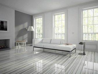 И, наконец, самый дорогой вид белого керамогранита – сатинированный. Этот вид плитки по всей толщине имеет одинаковый белый цвет и структуру, такая плитка имеет шелковистую блестящую поверхность благодаря технологии лощения. При механических повреждениях сколы незаметны из-за однородной текстуры, но эта плитка менее устойчива к истиранию, от частого использования шелковистость может затереться.