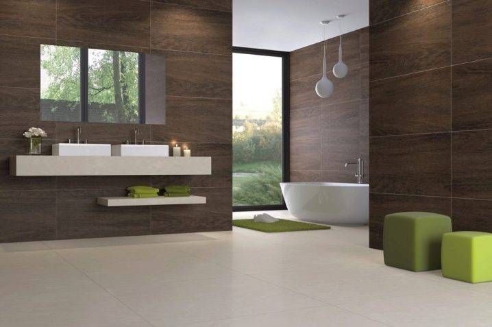 Плитка из керамогранита выпускается различных размеров. Самые распространенные параметры для использования в ванных и туалетных комнатах – 300х300, 400х400, 500х500. Более крупная плитка в небольших помещениях визуально сузит пространство и будет состоять из неравномерно нарезанных плиток, что не прибавит декоративности.