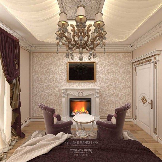 Дизайн бежевой спальни в дворцовом стиле. Фото 2016
