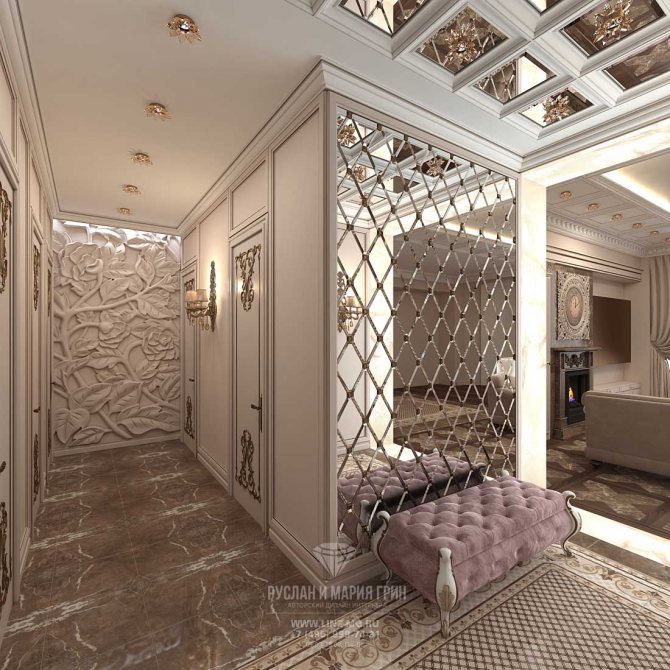 Современная идея дизайна прихожей в дворцовом стиле. Квартира в ЖК «Сколково Парк»