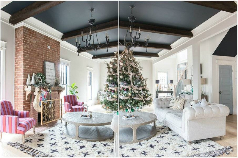 Чёрный цвет способен выделить и подчеркнуть контрастные элементы. На его фоне выразительно смотрятся декоративные балки и лепнина.