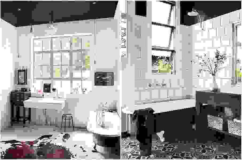 Яркие аксессуары сглаживают излишнюю строгость чёрного потолка