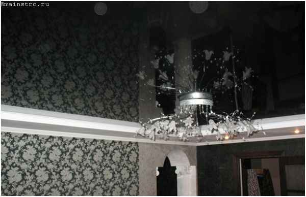 На большой площади натяжной потолок выглядит красиво, но со временем может провиснуть