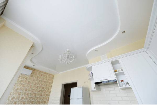 Двух – или многоуровневые потолки в кухне монтировать сложнее и дороже всего, т.к. особые детали обойдутся вам сверх цены за м2. Это такие детали монтажа, как: криволинейный участок, обход более 4 углов или крепление разделителя. В момент сдачи вам работы, внимательно осмотрите все детали, поскольку сложные потолки в кухне требуют более качественной установки.