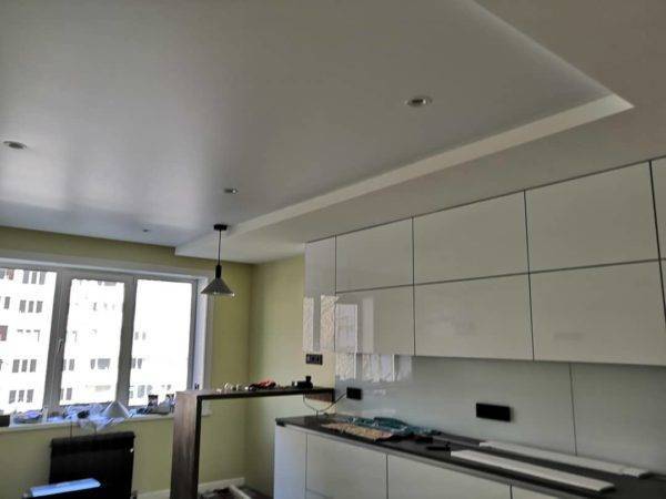 Преимущества и недостатки двухуровневых натяжных потолков на кухне