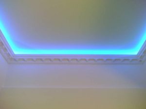 Белых кристаллов практически не производят. Синий элемент излучает ультрафиолетовый свет. Монтаж ленты в потолок из гипсокартона может проводиться с применением универсального варианта с контроллером.