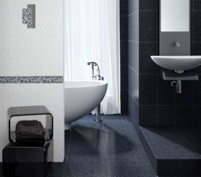 Так как ванная комната зачастую представляет собой небольшую комнату без окон, то лучше отдать предпочтение светлым тонам и незамысловатым дизайнам. Можно подобрать плитку, выдержанную в одном цвете, а можно выбрать отделку в контрастных оттенках. Первый вариант считается классическим для ванной комнаты и санузлов и пользуется большим спросом у потребителей.