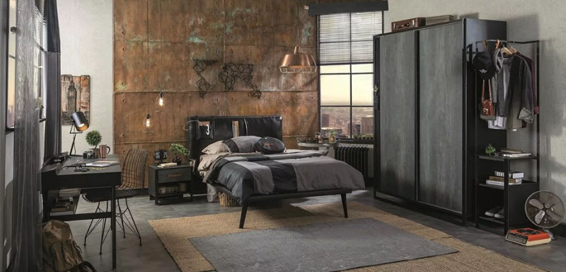- детская в стиле лофт требует минимум мебели, однако шкаф пригодится: если поставить его напротив окна, то вокруг можно хаотично раскидать мягкие кресла;