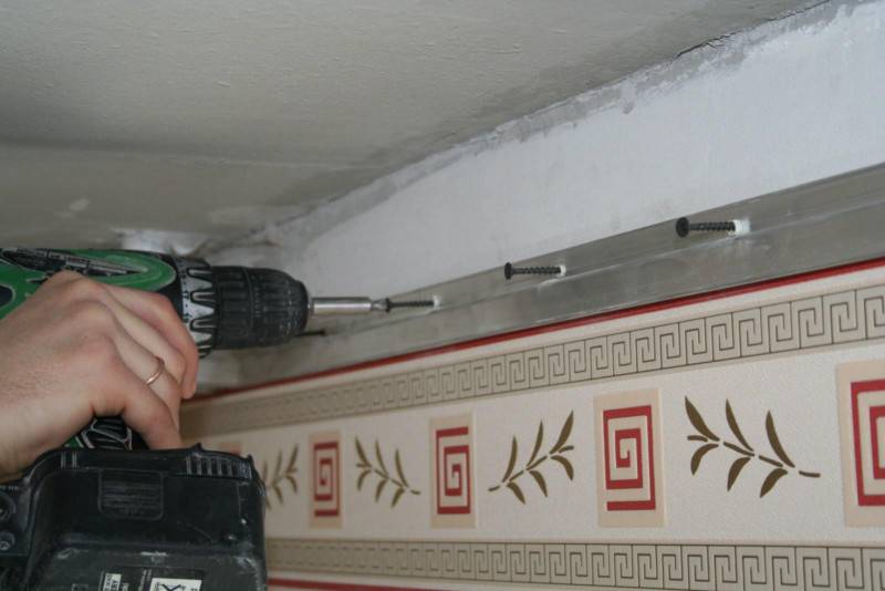 Крепление профиля бесшовного потолка