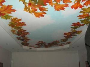 - Разнообразие фактур и дизайнов дает возможность создавать декоративные конструкции любой степени сложности. А нанесение фотопечати и рисунков акриловыми красками еще больше расширяет возможности этих потолков в придании интерьеру индивидуального характера.