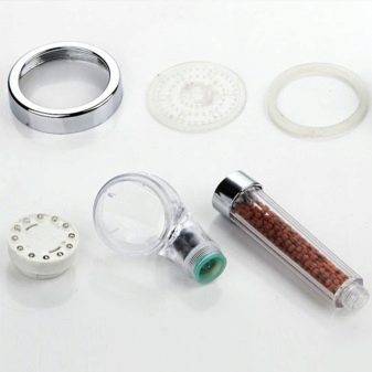 - Внутри корпуса размещается мини-турбина, работающая от тока воды. Самые дешевые насадки вместо турбины оснащаются батареями, но они очень быстро выходят из строя.