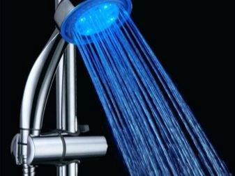 Первая модель выпускается нескольких видов. Они могут быть с произвольным изменением оттенка и со встроенным температурным датчиком. Самым популярным типом является второй. Он реагирует на изменение температурного показателя подаваемой воды. Если же значение пограничное, например, вода не холодная, но еще и недостаточно теплая, то насадка начинает мигать и зеленым, и синим.