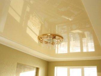 Глянцевые конструкции, в первую очередь, помогают увеличить количество света в помещении. Они отражают до 96% процентов попадающих на них световых лучей. Несмотря на это, потолок не выглядит зеркальным, хотя силуэты людей и предметов в его отражении будут слегка различимы. Благодаря такому свойству полотна, появляется эффект зрительного увеличения комнаты, что, бесспорно, является хорошим решением в дизайне интерьера помещений с небольшой высотой. Стоимость такого пололка варьируется от 550 до 1300 рублей за квадратный метр.