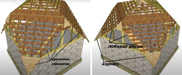 Установка карниза и лобовой доски, которая прибивается к кобылкам.